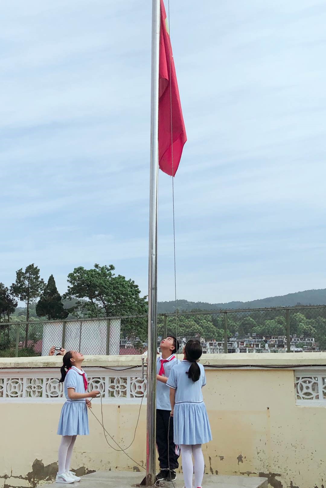早上8点,在中天希望小学的操场上,举行了庄严的升旗仪式,现场所有人接受爱国教育的洗礼。七十周年的新中国正值青春年华,我们所有人都凝聚着正能量,唱响主旋律,爱心助成长。